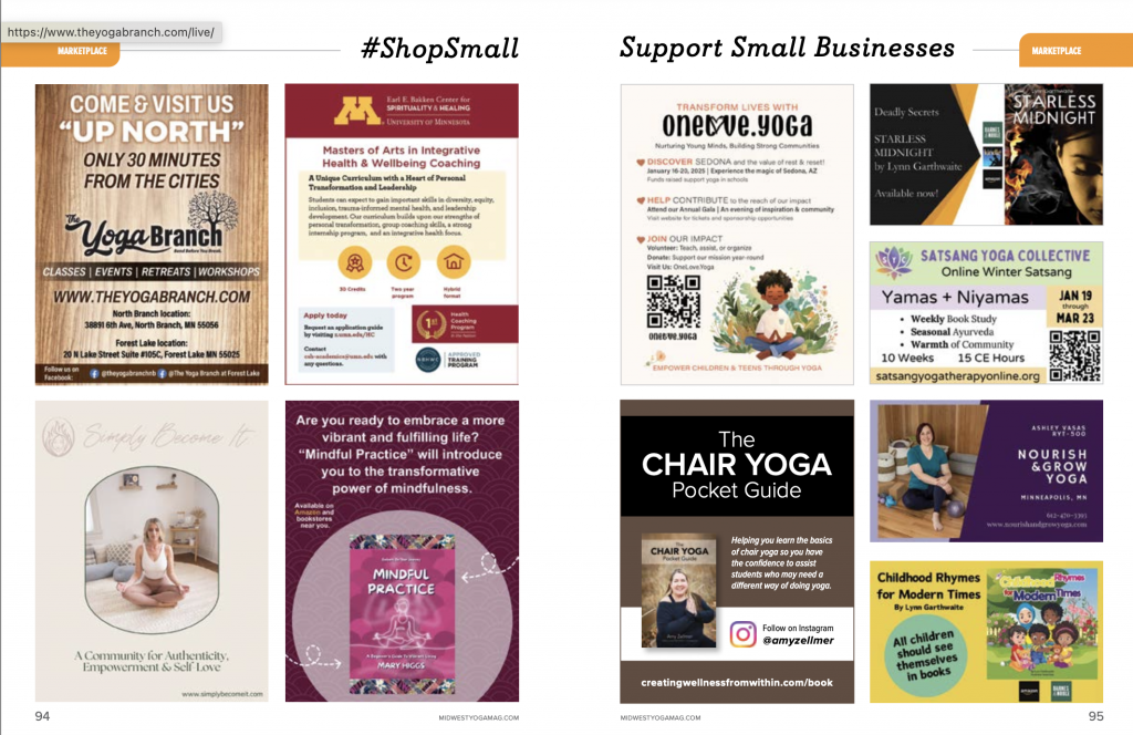 - A special section highlighting small businesses — perfect for authors, independent yoga teachers, coaches, jewelry makers, retreat leaders, clothing designers, and so many more.This section will be featured in print as well as published online, sent in a dedicated email newsletter, and pushed out through our social media channels.
